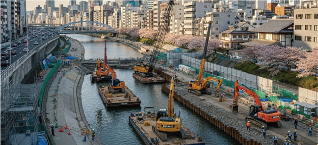 北名古屋市、豊山町、清須市をはじめとした地域において、道路、下水道、河川、舗装工事など、暮らしに欠かせない社会インフラの整備に取り組んでいます。